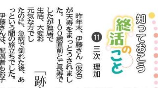 「2026年2月3週号農業共済新聞」に寄稿しました。「知っておこう終活のこと」というテーマをいただきました。私が経験したおひとりさまの旅立ちについて執筆いたしました(個人情報がわからないように脚色しています)。ご笑覧くださいませ。